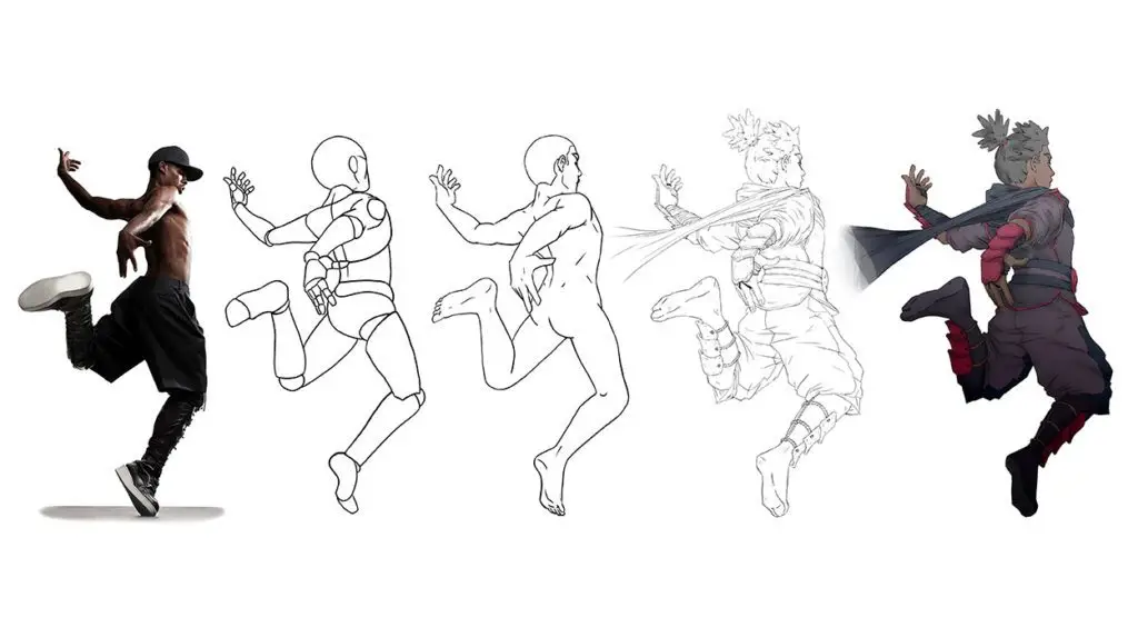 - Haz 10 dibujos rápidos sin preocuparte por el detalle, solo el movimiento y proporción.